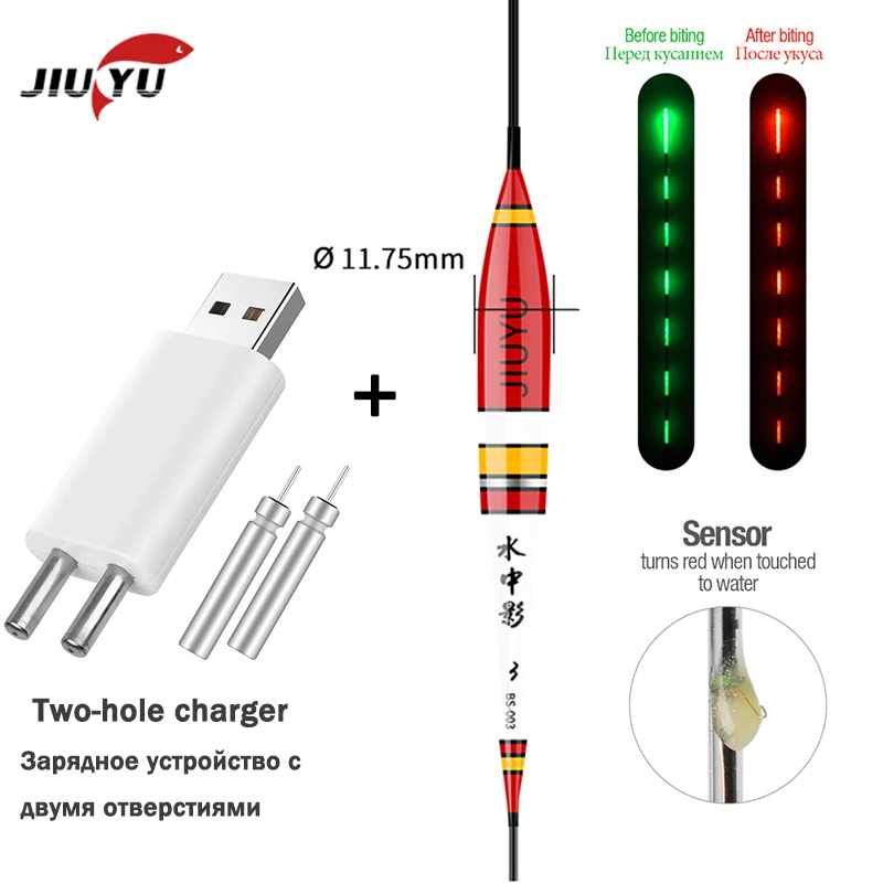 Name: JiuYu-flotador de pesca inteligente, alarma de mordedura, cebo de pescado, luz LED, cambio de Color automático, boya electrónica de noche, conjunto de accesorios